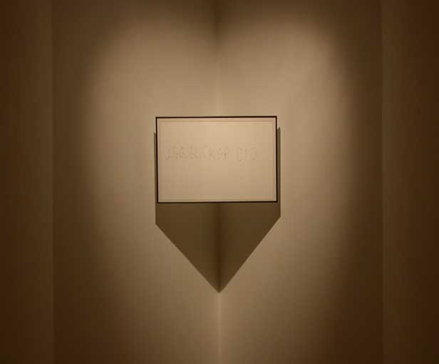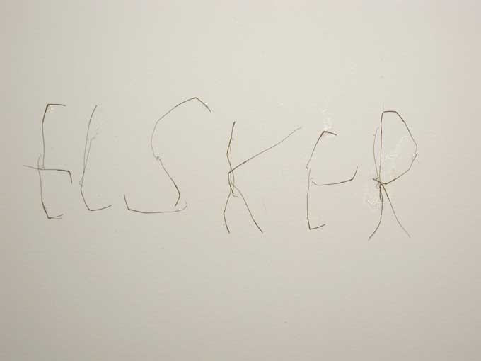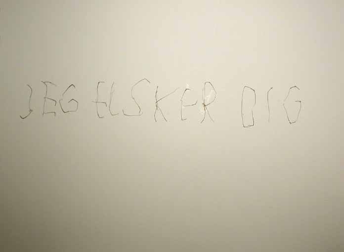 Er "Jeg elsker dig" skrevet med edderkoppeben - ben fra levende edderkopper formet til bogstaverne og ophængt inderst i et langt, meget snævert rum.